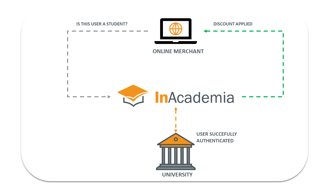 Provided the student is registered with a participating eduGAIN Identity Provider, the InAcademia Service provides merchants with a quick, easy, reliable and secure way to verify academic affiliation (whether a user is a student, a member of staff or faculty), thereby removing outdated, slow, costly and manual validation processes.